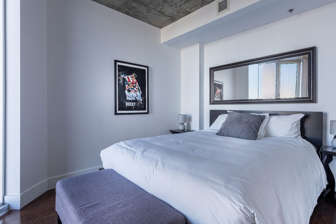 Condo de 900 pi² cuya organización sobria y de buen gusto se mezcla perfectamente con el decorado urbano exterior.