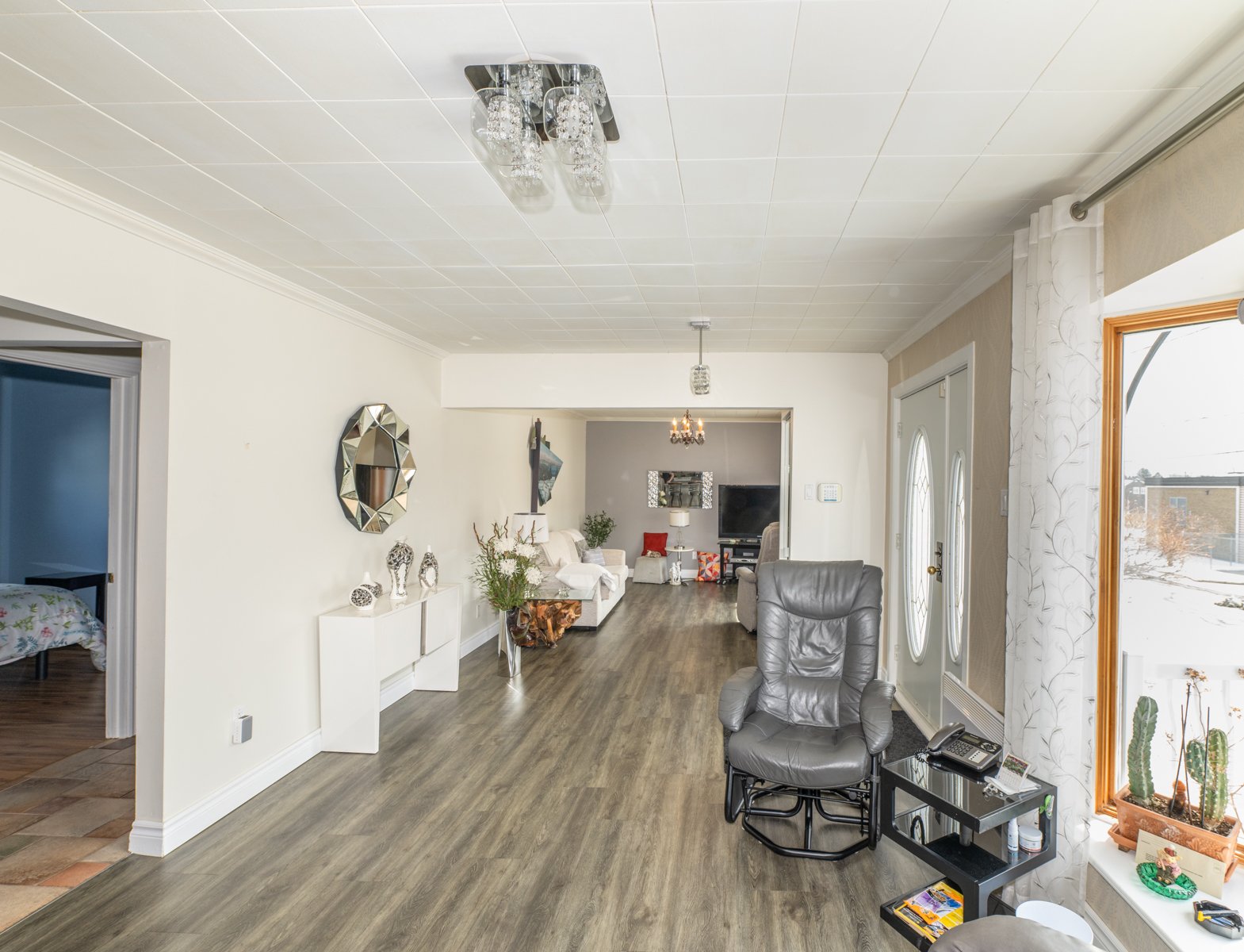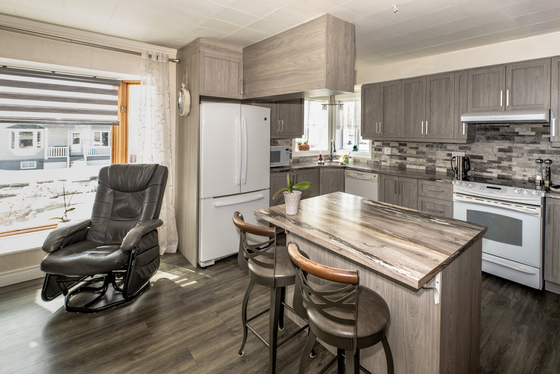 - pôles,rideaux,stores, luminaires,laveusse-sécheuse, lave-vaisselle, poêle à bois, système d,alarme, bacs bleu,vert et brun